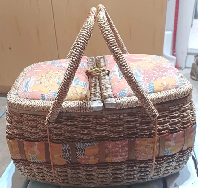 Lot Detail Vintage Singer Sewing Caddy Woven Sewing Basket Wood Spool Thread Buttons More